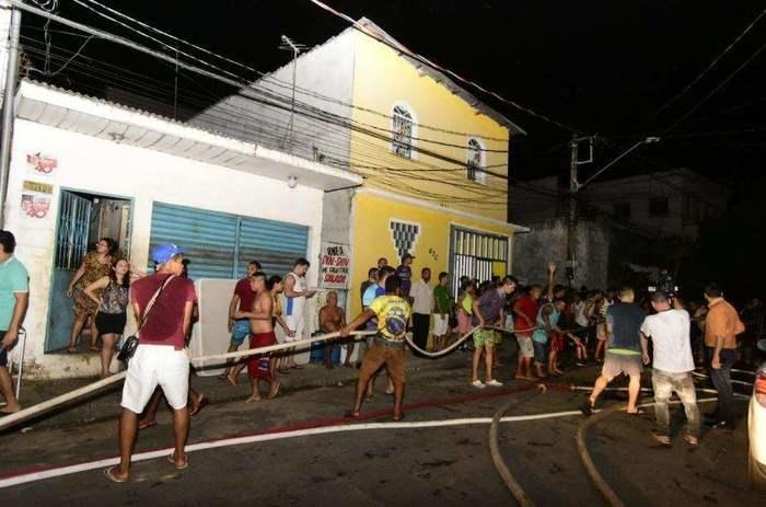 ruas, moradores tentam ajudar o Corpo de Bombeiros a controlar as chamas.